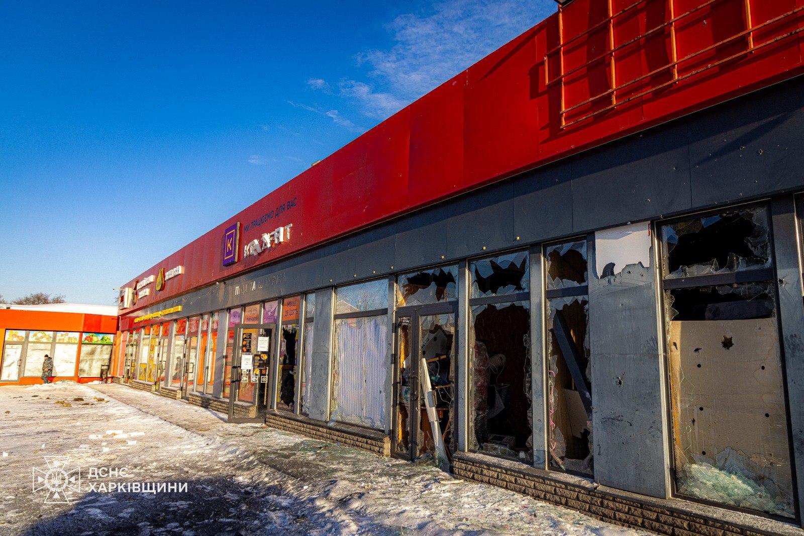Рятувальники провели обстеження території після обстрілу. Пошкоджені зупинка громадського транспорту, фасад і вікна торгівельних павільйонів, а також однієї вантажівки.