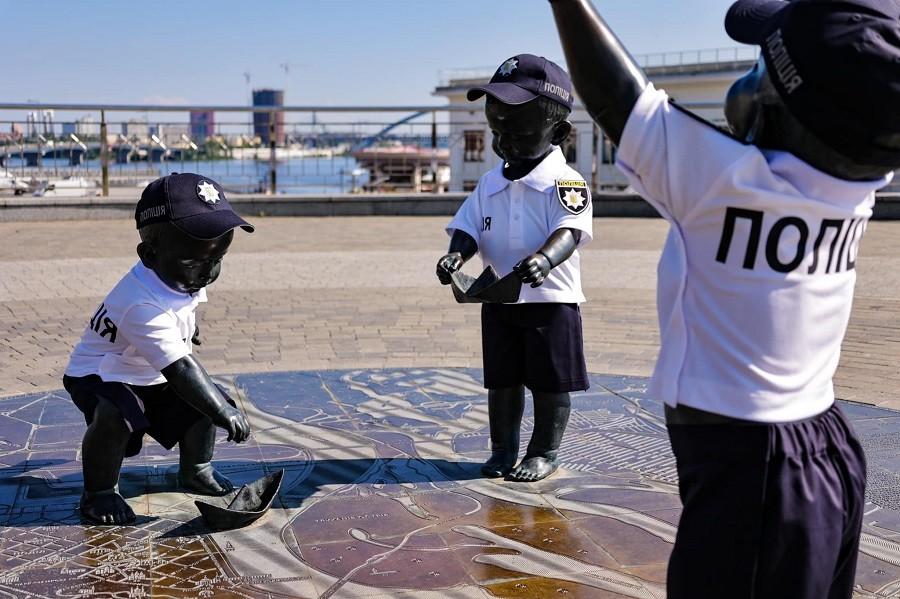 Фото скульптур малюків у формі патрульних оприлюднив у соцмережах очільник Національної поліції України Ігор Клименко.