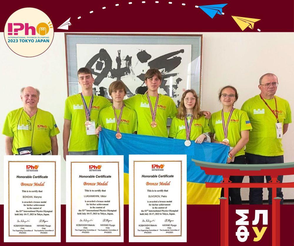 Серед учасників від України цьогоріч було троє випускників Українського фізико-математичного ліцею Київського національного університету імені Тараса ШевченкаМарина Богдан, Віктор Лук’яніхін і Петро Суворов. Вони стали бронзовими призерами 53-ї IPhO2023