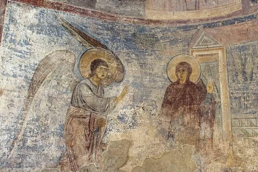 На фресці «Благовіщення» зображено Діву Марію, яка отримує звістку від Архангела Гавриїла про те, що Вона має стати Матір’ю Спасителя.