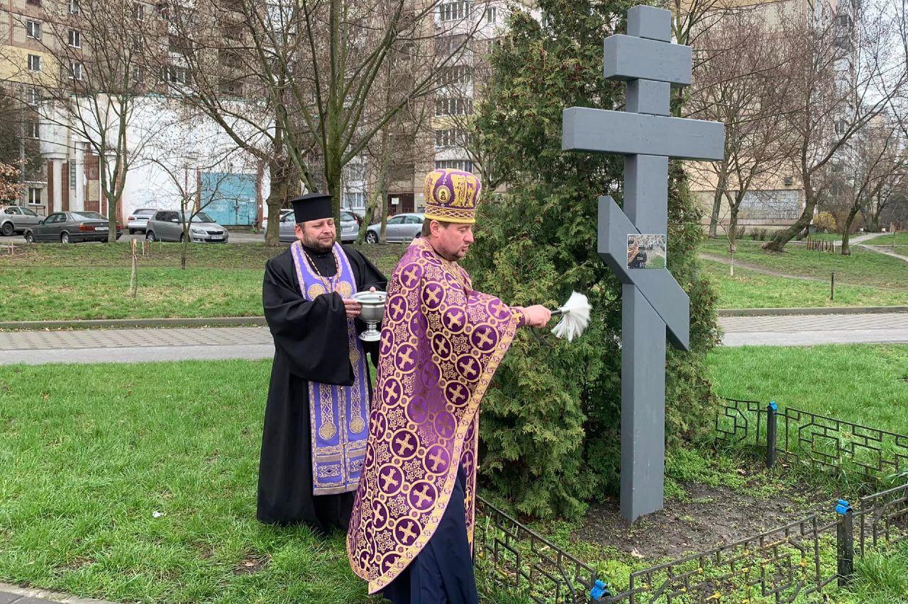 Освячення пам’ятника провели священики ПЦУ за участю представників Святошинської адміністрації.