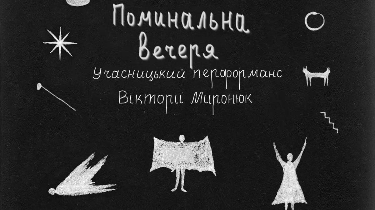 «Поминальна вечеря» – це кулінарний перформанс Вікторії Миронюк, розрахований всього лише на 8 глядачів та глядачок. Мисткиня влаштовує вечерю, щоб поминути свою предкиню, а також близьких людей, відносини чи місця учасників та учасниць.