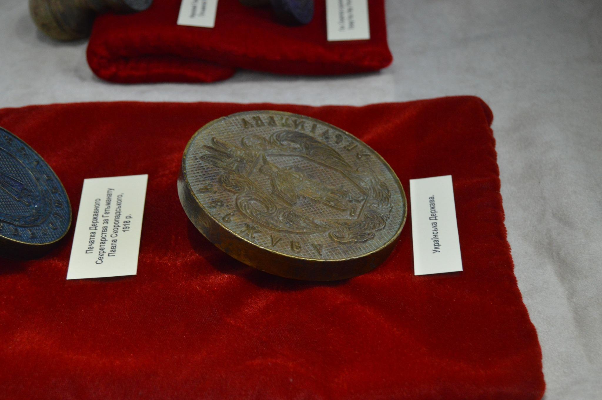 Серед експонатів — печатки, що підкреслюють історичну тяглість сучасної України.