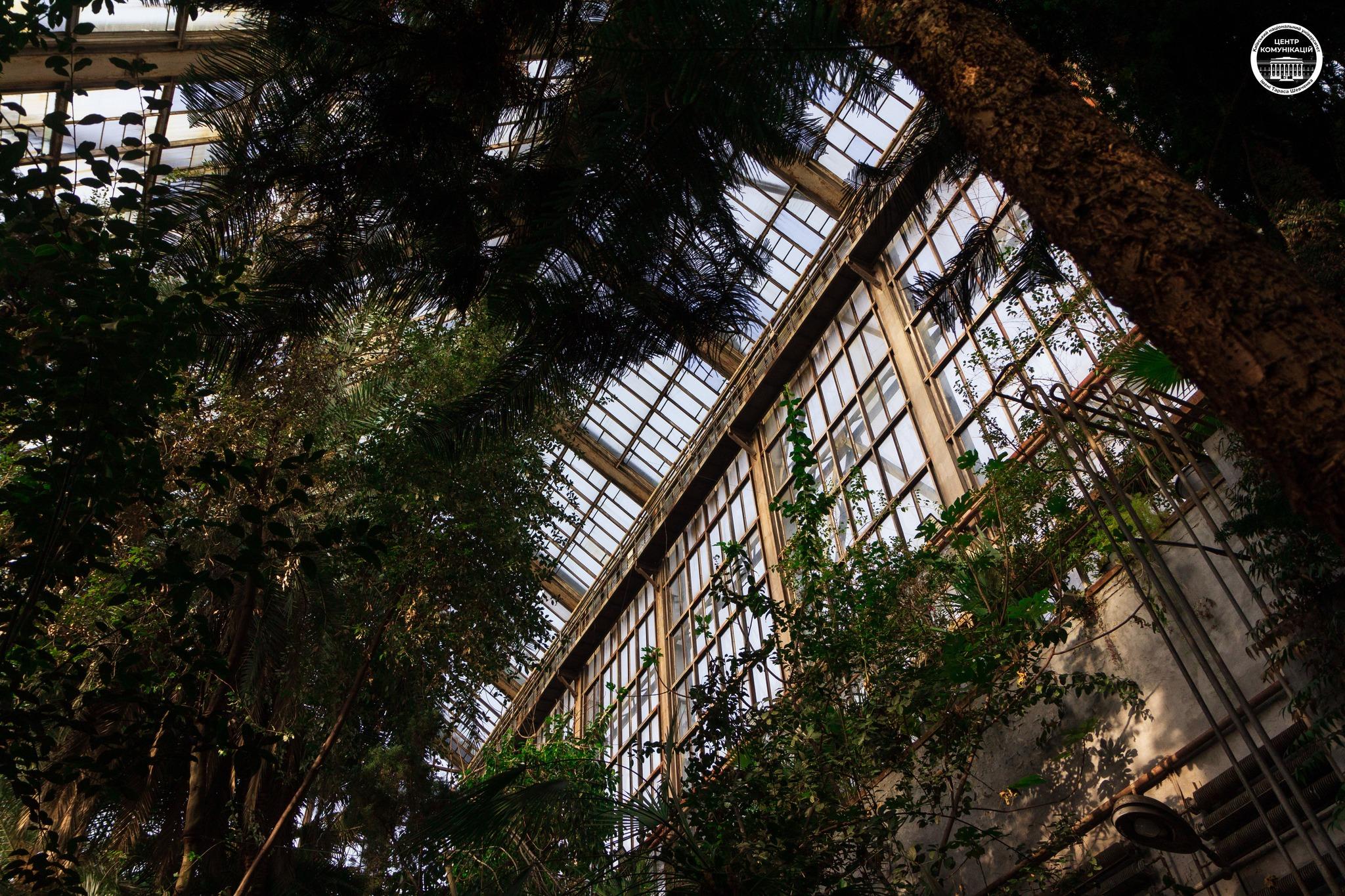 Варто додати, що мова йде про 30-метрову австралійську пальму, яка квітує взимку, тому що родом з Австралії, де зараз літо.Скляна будівля оранжереї Ботсаду була побудована саме для неї.