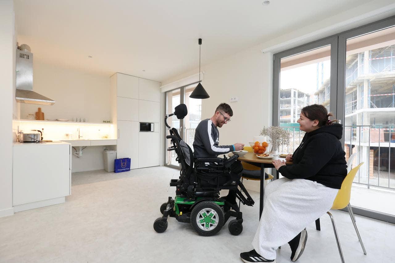 Це окрема 6-поверхова будівля на 24 квартири, 20 з яких двокімнатні, а решта – однокімнатні. Кожне помешкання обладнане кухнею і санвузлом. А найголовніше, що весь простір будинку – безбар’єрний, тобто повністю облаштований для комфортного проживання людей на милицях, кріслах колісних, із протезами чи з порушеннями зору.
