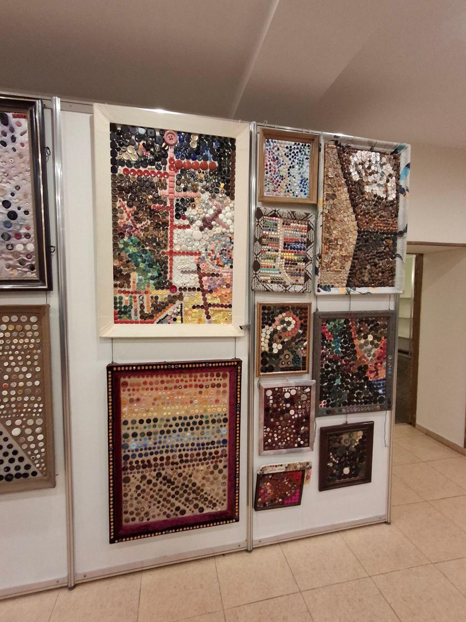 На експозиції представили 134 картини, створені з 60 тисяч гудзиків, пришитих вручну модельєром-дизайнером Миколою Івановим, пише Newformat.