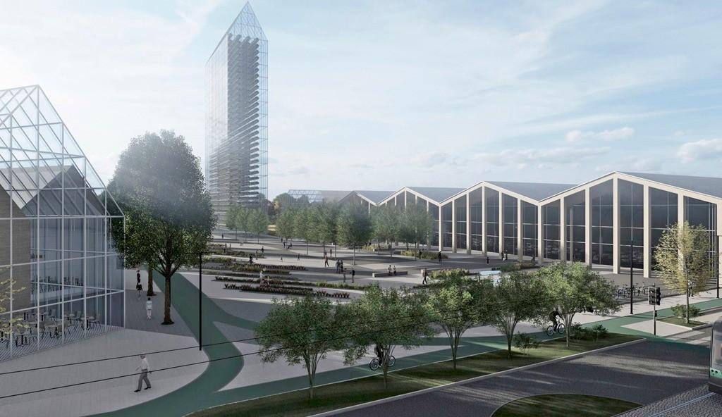 На цій площі також знаходиться основна візуальна домінанта, найвища споруда міста та його символ – вертикальна теплиця висотою до 50 м. Ринкова площа – головне місце зустрічі мешканців міста, а вертикальна теплиця – це адаптація традиційної ідеї концентрації громади навколо храму.