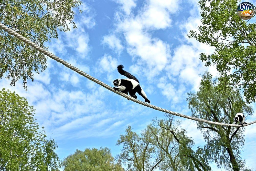 У їх розпорядженні аж два зелених острівця площами 25 та 50 квадратних метрів. Для переміщення між новими оселями тут є два спеціальні канати, довжиною понад 4 метри, які було закріплено між деревами.
