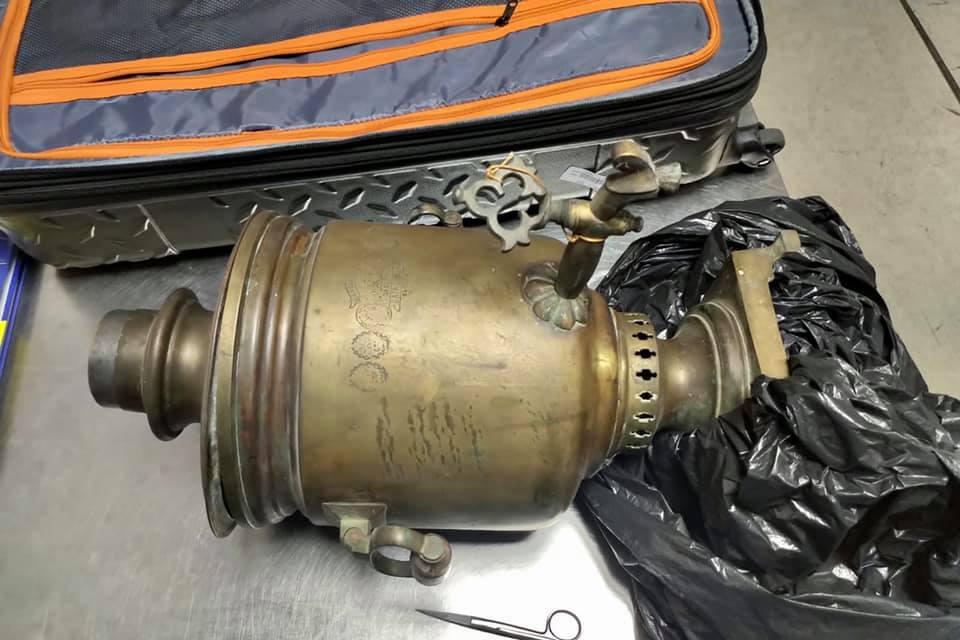 Як розповіли митники, старовинний самовар 1877 року виготовлення з клеймами самоварних фабрикантів братів Баташових громадянин США намагався вивезти через аеропорт «Бориспіль» до РФ транзитом через Польщу.
