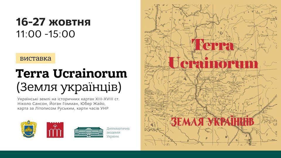 На виставці «Terra Ucrainorum» представлені українські землі на картах європейських картографів: Ніколо Сансона, Йогана Гоммана, Юбера Жайо. А також карта «Східна Європа до кінця 13-го століття», складена за Літописом Руським, карти часів УНР та історична карта острова Зміїний.