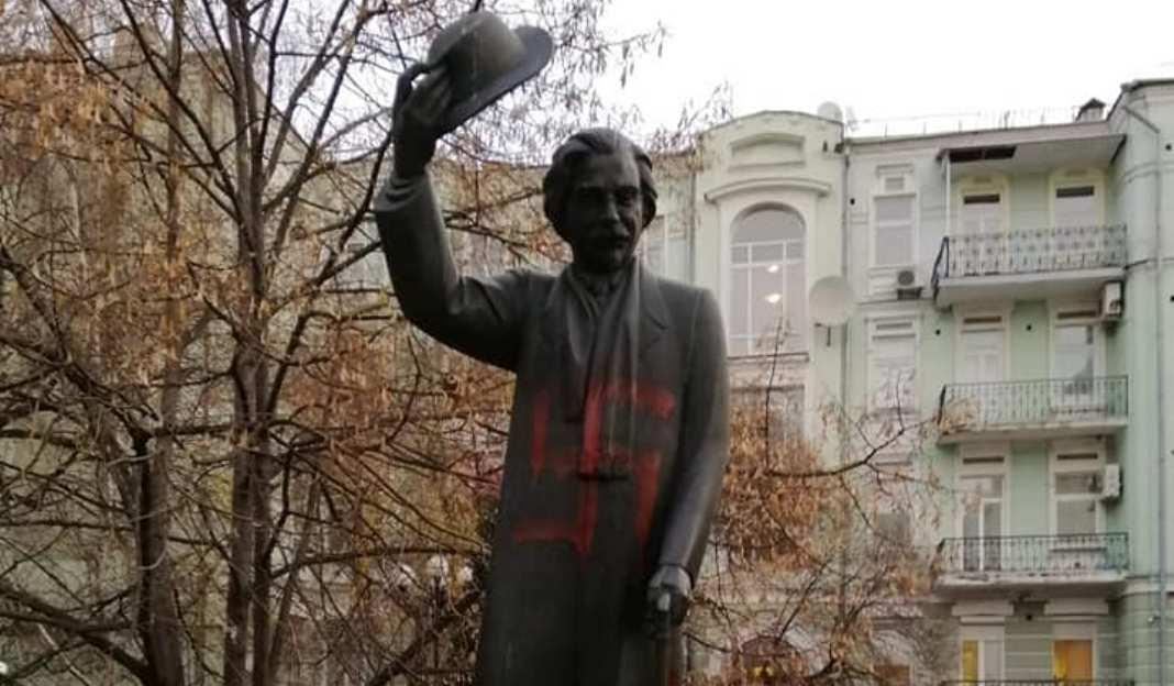В Киеве неизвестные разрисовали свастикой памятник классику еврейской литературы Шолом-Алейхему, которій находится на улице Рогнединской, 3. Об этом сообщил в Facebook главный раввин Украины и Киева Моше Реувен Асман.