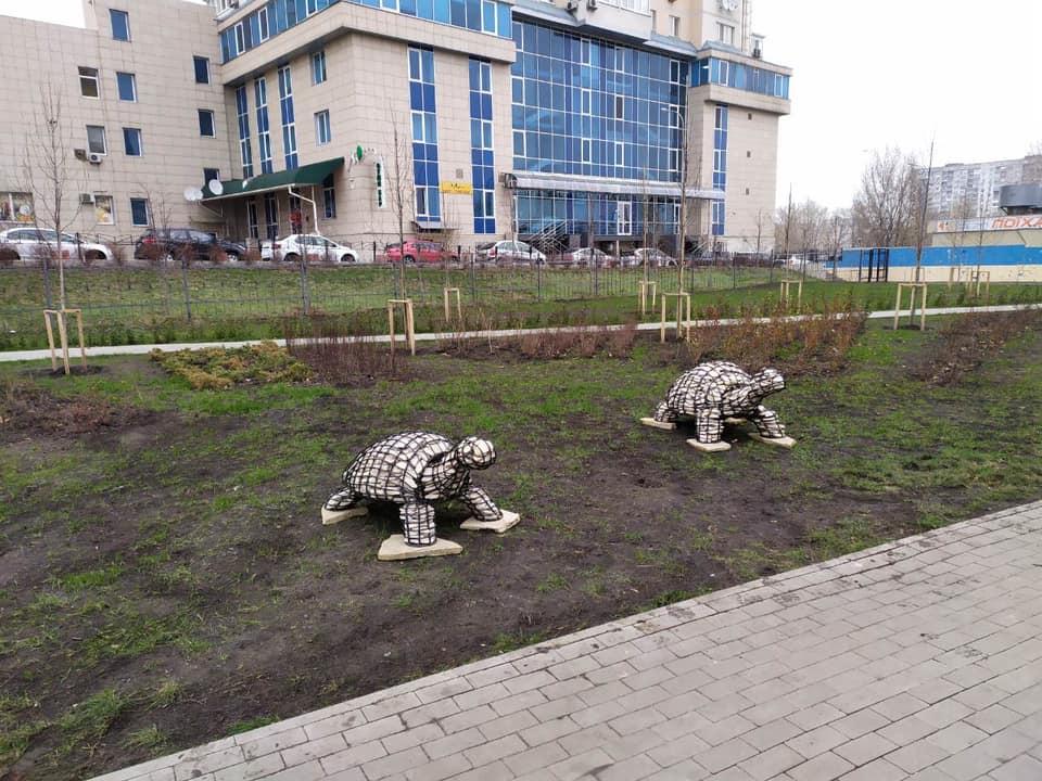 Как сообщает КП СЗН Днепровского района в Facebook, арт-объекты выполнены из подручных материалов и наполнены камнем. Всего на территории Днепровского района должно появиться восемь таких черепах.