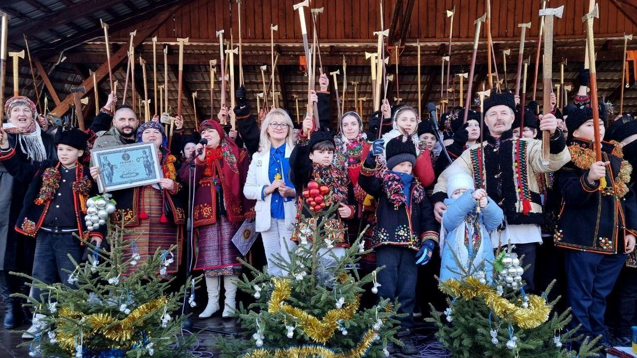 Після рекорду учасники виконали знамениту гуцульську коляду, яка внесена до Національного переліку нематеріальної культурної спадщини України.
