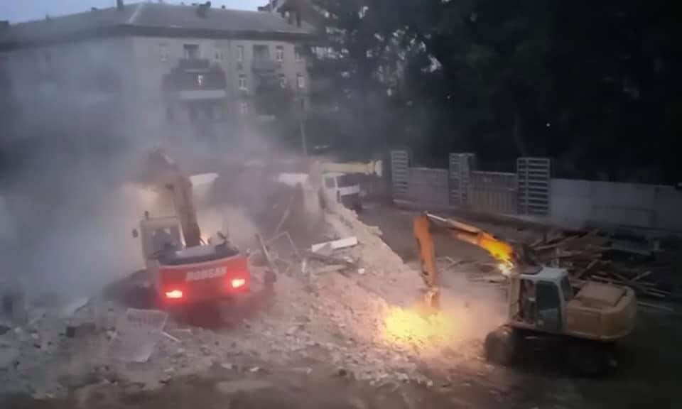 Нагадаємо, вчора поліція опечатала будівлю, але забудовник все одно продовжив демонтаж будівлі на Обсерваторній, 6 у Києві, більш відомої, як садиба Барбана. Її вже кілька днів намагалися врятувати активісти. Сьогодні рано вранці садибу Барбана зрівняли з землею (ВІДЕО).
